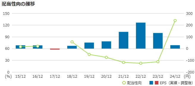 ・配当性向は低く抑えられていたものの、24年は急上昇