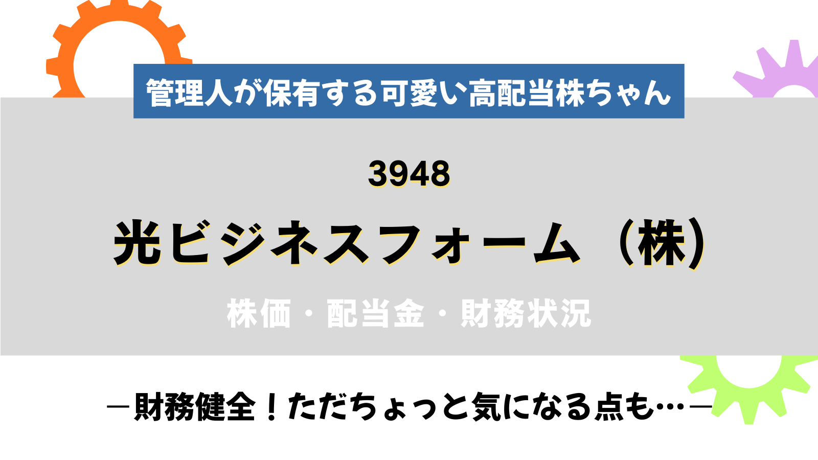 投資初心者向け高配当株紹介 3948光ビジネスフォーム(株)の株価・配当金・財務状況について