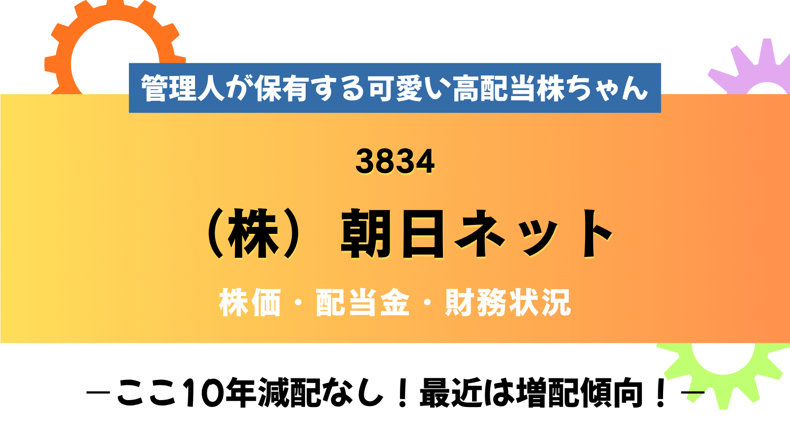 優しい高配当株紹介 3834(株)朝日ネット-安定の優等生銘柄